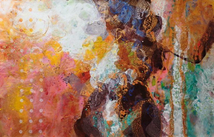 Kortárs festmény, vegyes technika (acril, pastell, spray, woody, Posca), feszített vászonra