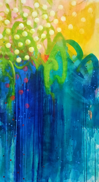 Kortárs festmény. Akril, szines pasztell és olaj pasztell vásznon.